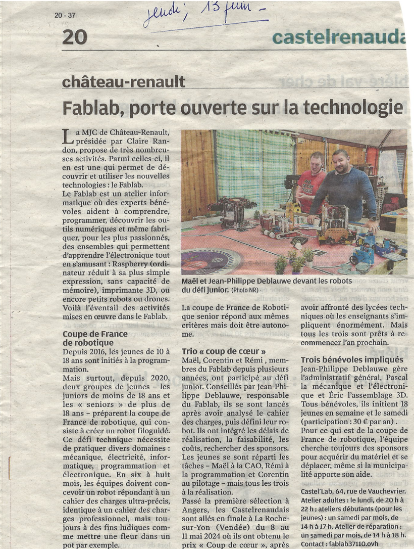 Article Trophée robotique Journal de Chateau-Renault Été 2021 FR