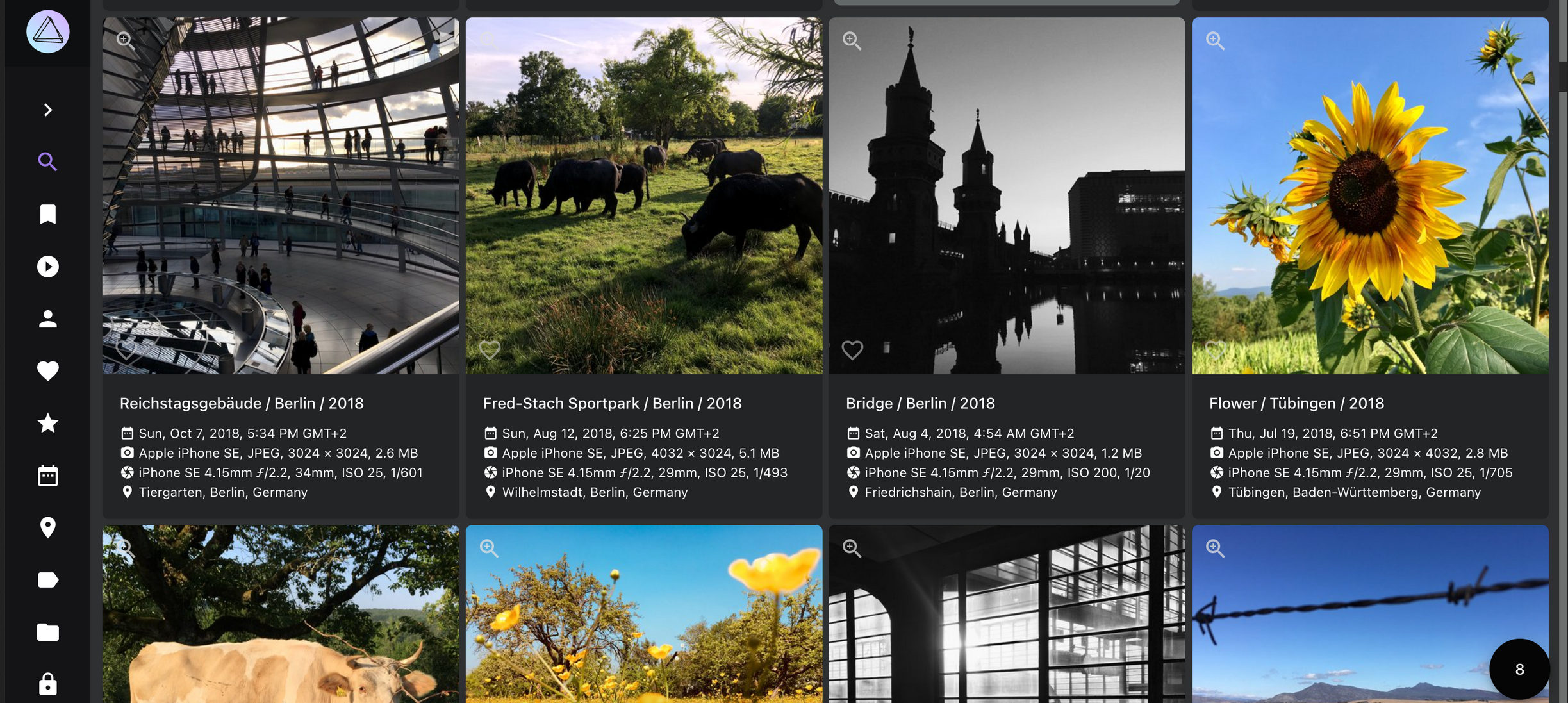 Dans l’application de bureau PhotoPrism, vous pouvez modifier les métadonnées de vos images, marquer des photos comme favorites et bien plus encore.