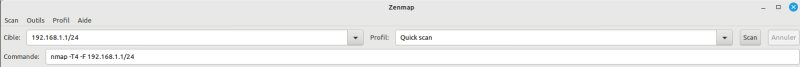 sudo apt-get update apt-get upgrade sudo apt-get install nmap // Ou zenmap interface graphique de nmap sudo apt-get install zenmap