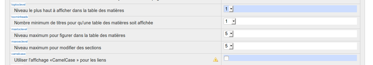 Rubrique : “Nombre minimum de titres pour qu'une table des matières soit affichée” = 1