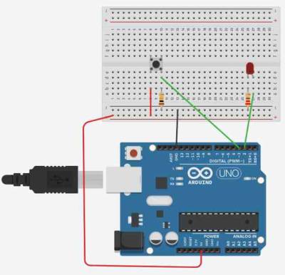 Le bouton poussoir est actif quand on envoie un + 5V ( 1 ) sur la broche D3 de l'arduino