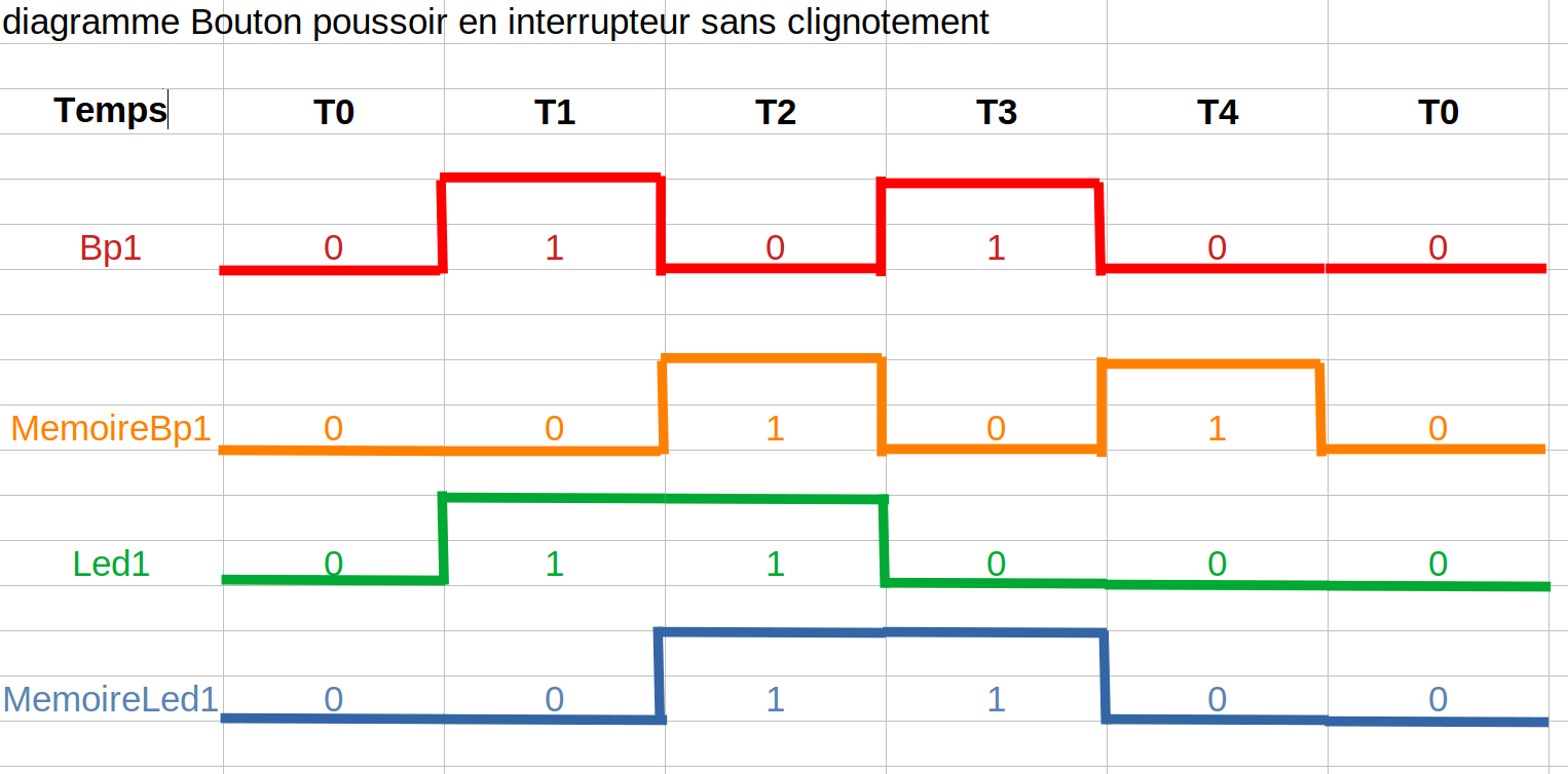 Explications diagramme bouton poussoir en interrupteur sans clignotement