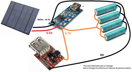 Par rapport aux batteries LiPo et Li-ion, les batteries NiMH nécessitent la même connexion au microcontrôleur mais ont une densité d'énergie plus faible et il n'est pas recommande d'utiliser les batteries NiMH .