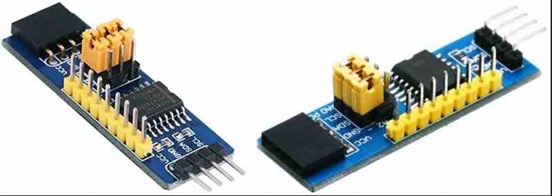 Les trois broches d'adresse matérielle permettent à huit de chaque appareil d'être sur le même bus I 2 C, il peut donc y avoir jusqu'à 16 de ces extenseurs d'E/S PCF8574/PCF8574A ensemble sur le même bus I2C, prenant en charge jusqu'à 128 I/Os.