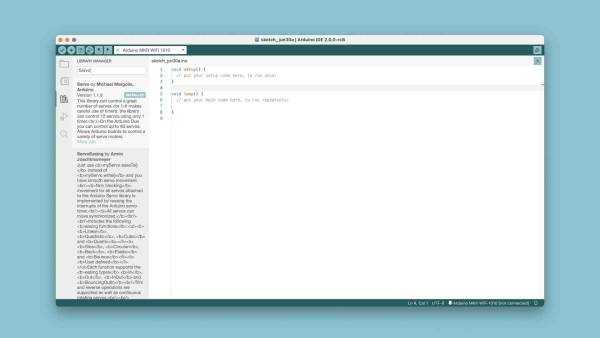 Avec le gestionnaire de bibliothèques, vous pouvez parcourir et installer des milliers de bibliothèques. Les bibliothèques sont des extensions de l'API Arduino et facilitent par exemple le contrôle d'un servomoteur, la lecture de capteurs spécifiques ou l'utilisation d'un module Wi-Fi.