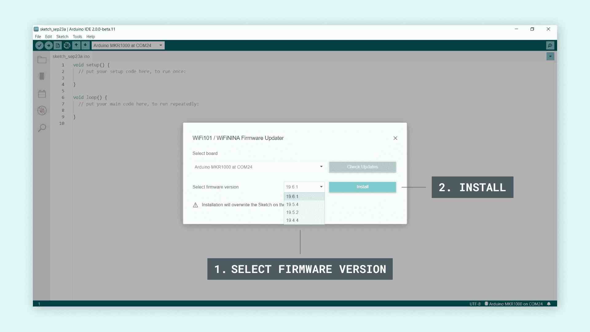 Vous pouvez mettre à niveau et rétrograder la version du micrologiciel de vos cartes Wi-Fi (avec un module NINA) et télécharger des certificats racine SSL directement dans l'IDE.