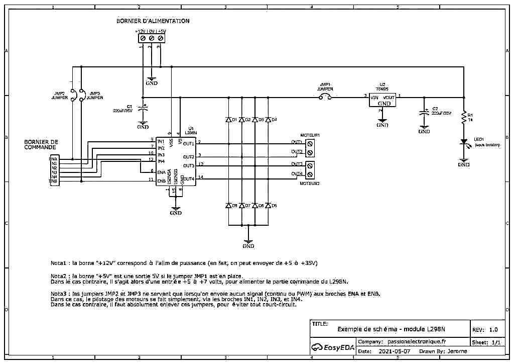 | 2 | OUT3 & OUT4 | Ce bornier fournira la sortie pour le moteur B . |