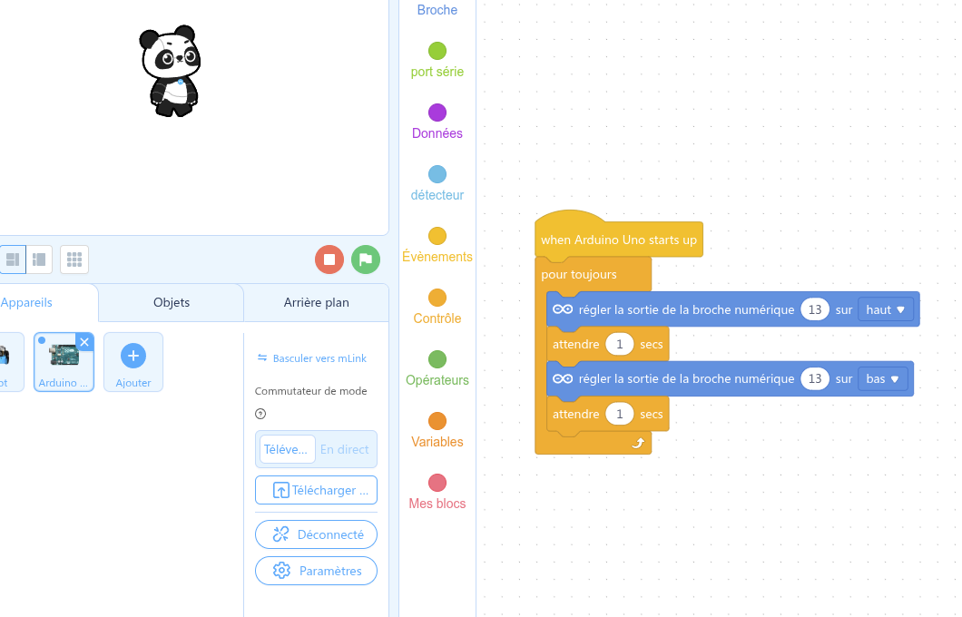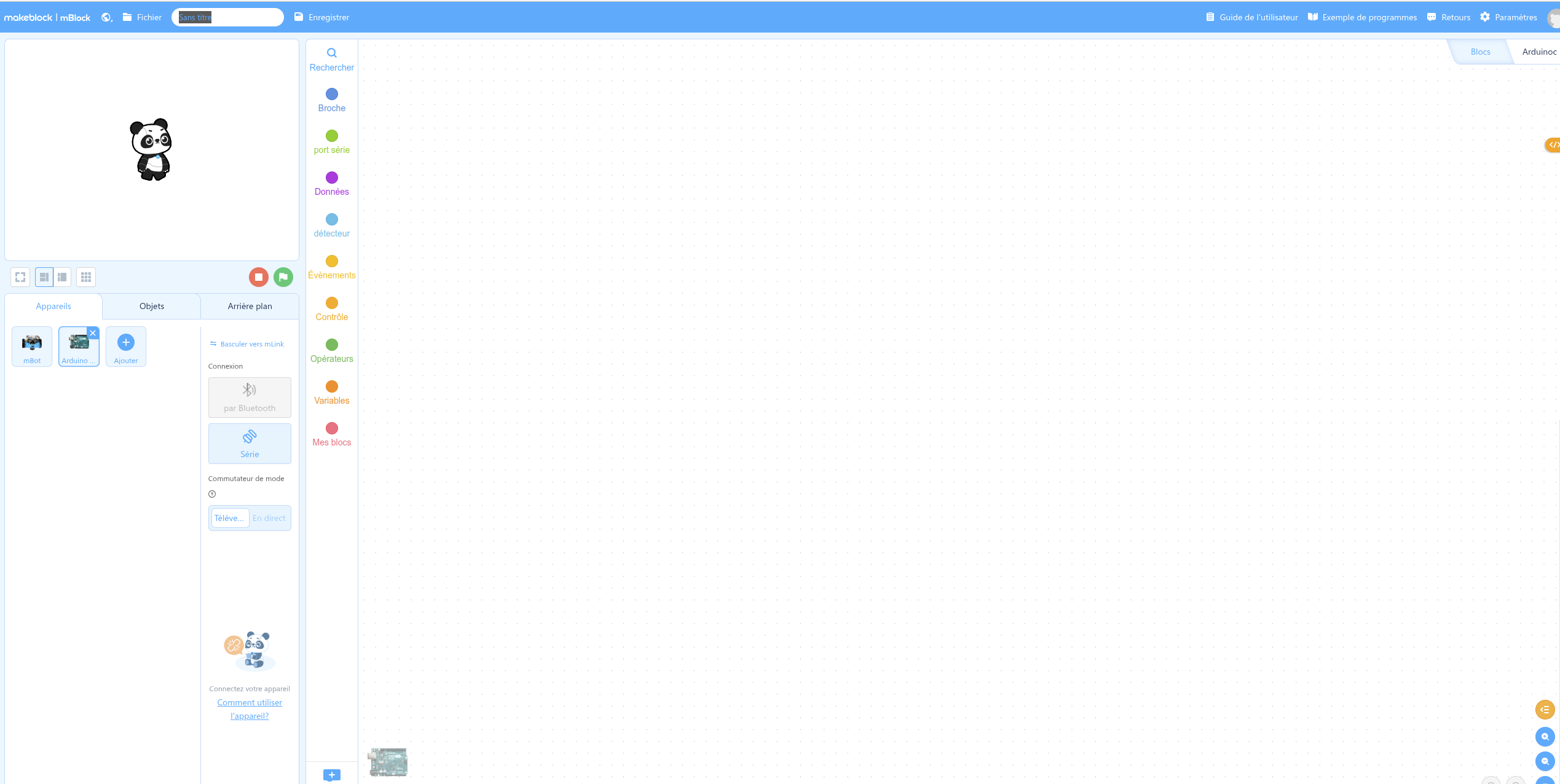 Ajouter un appareil soit Mbot( robot) soit une carte arduino ( Uno)