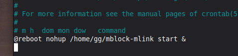crontab -e @reboot nohup /home/user/mblock-mlink start &