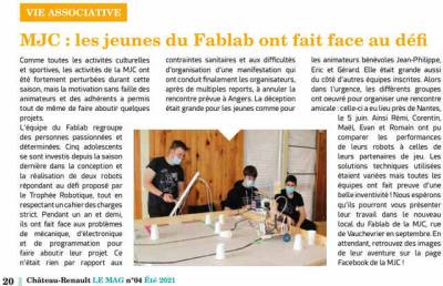 ci-joint un lien pour découvrir l'article qui est paru dans le bulletin municipal á propos du fablab et du trophée robotique… lien du bulletin municipal : http://www.ville-chateau-renault.fr/IMG/pdf/mag_no4_ete_2021._web.pdf