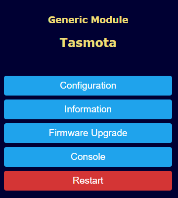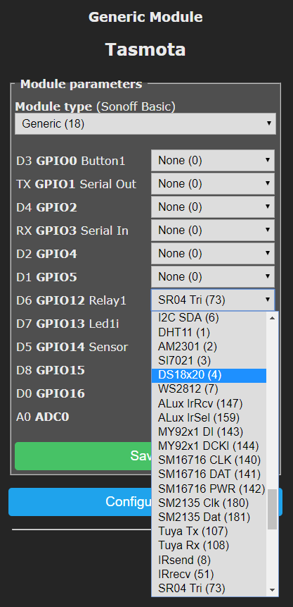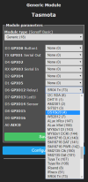Sélectionnez d'abord le module souhaité pour l'appareil (attendez le redémarrage). Selon le type de module , seules certaines broches GPIO sont configurables par l'utilisateur. Le module Generic (18) a tous les GPIO configurables.