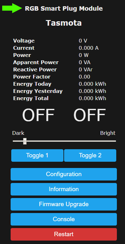 http:<ip>/cm?cmnd=Power%20TOGGLE http:<ip>/cm?cmnd=Power%20On http:<ip>/cm?cmnd=Power%20off http:<ip>/cm?user=admin&password=joker&cmnd=Power%20Toggle