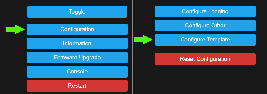 ou en utilisant les commandes :Module et GPIO, ou Template.