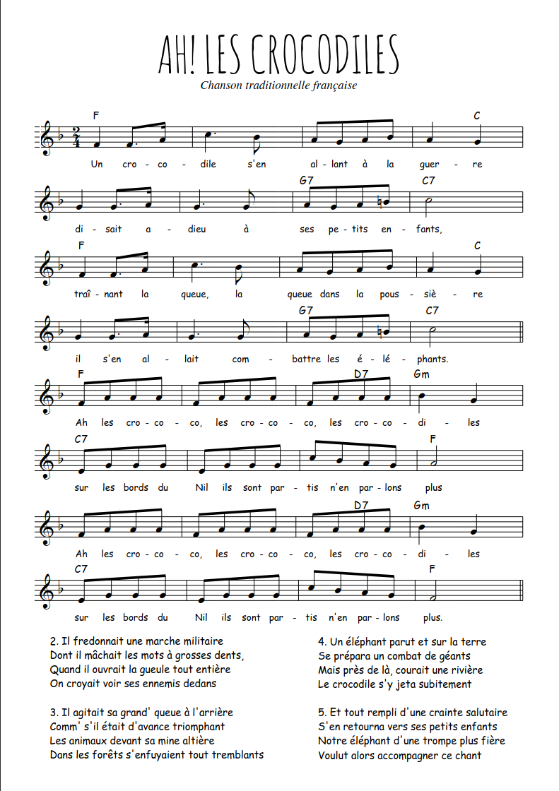 Partition musique : Ah! Les crocodiles ...