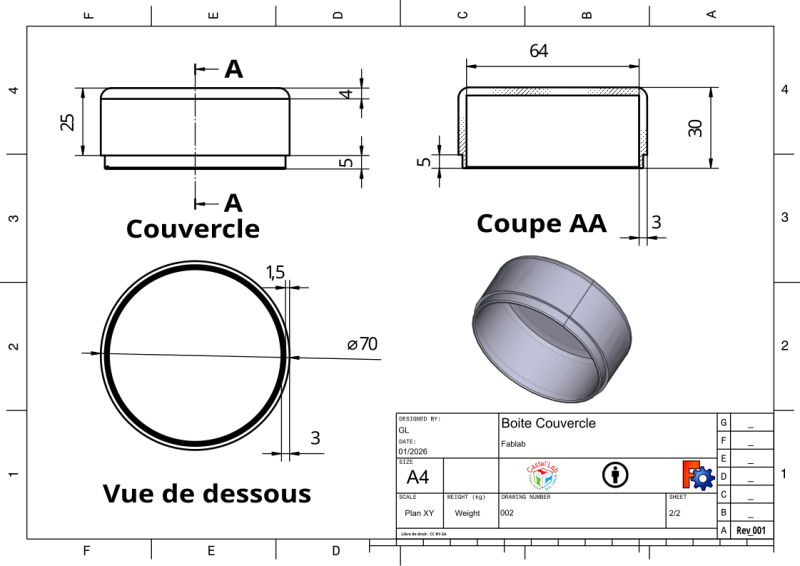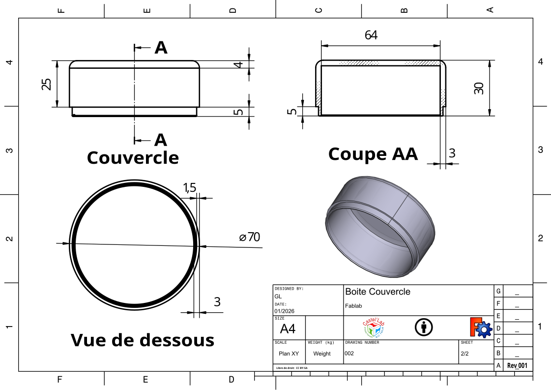 Nous avons bien un couvercle et une boite qui pourront s’emboîter correctement :