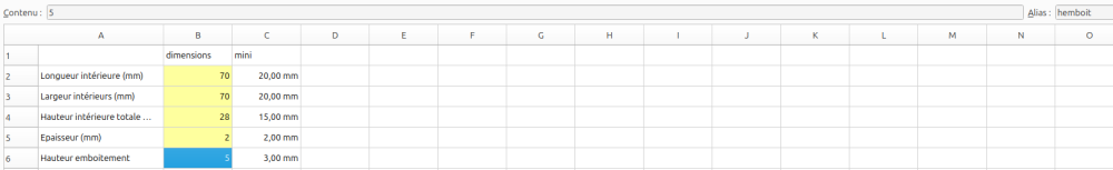 - Etape 1 -Création d une feuille de calcul avec le module “Spreadsheet” ( on peut la renommer “dim” pour dimension, plus court)