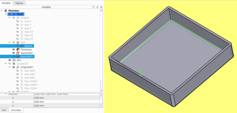 On a maintenant 2 corps, renommés « Fond » et « Couvercle ».
