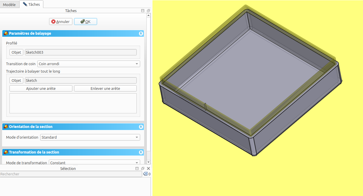 - Faire “Glisser” avec la souris le “Sketch001” dans le “Corps” Couvercle