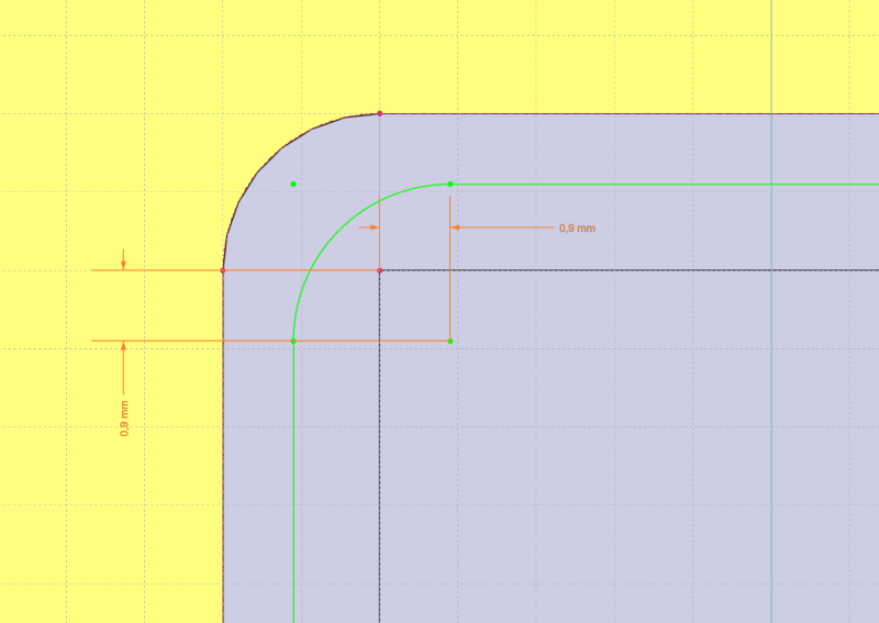 On crée une géométrie externe sur les 4 arcs de cercle des coins avec
