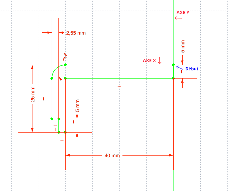 - Donner la valeur de rayon de 20 mm pour l'arc de cercle