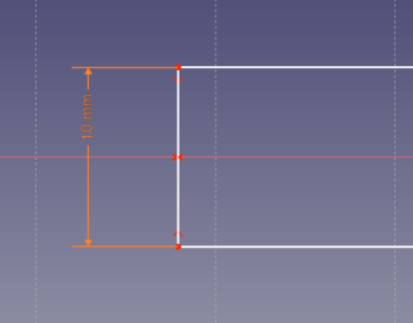 Nous retournons modifier notre esquisse et allons y ajouter cette fois les contraintes liées aux variables. Par exemple nous fixons la distance verticale du segment vertical gauche de notre esquisse, mais au lieu de saisir la valeur numérique, nous cliquons sur le symbole f(x) situé à droite du champs de saisie pour afficher un éditeur de formule.