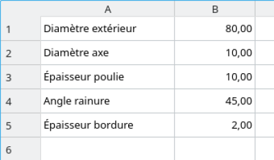 On cherche à modéliser une poulie avec FreeCAD. Afin d'avoir la possibilité de modifier facilement le modèle 3D obtenu, nous allons utiliser un système de variables pour reconstruire rapidement de nouveaux modèles.