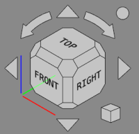En haut à gauche de la zone graphique,se trouve le cube de navigation. Il permet de pivoter les objets selon différentes directions, ou encore d’afficher les objets selon un plan de projection particulier (Vue de face, de droite, de dessus…)