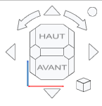 - Un clic sur le triangle haut ou bas pivote les objets de 45° autour d’un axe horizontal dans le plan de l’écran.