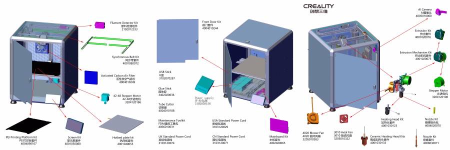 Ce châssis fermé autorise de nombreux filaments sur la Creality K1 Max : PLA, PETG, ABS, PET, TPU, PA, ABS, ASA, PC, PLA-CF, PA-CF, PET-CF.