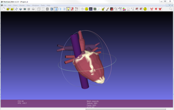 <br> Dans l'éventualité où l'on désirerait fusionner deux ou plusieurs objets (peut-être dans le simple but de fusionner des modèles se trouvant déjà en bonne position), il est préférable d'utiliser des outils comme Google Sketechup ou Netfabb, d'exporter les objets séparément, puis d'ouvrir individuellement chaque objets dans Meshlab. En effet, aligner des modèles et fusionner des mailles (“Mesh merging”) est plus compliqué avec Meshlab.