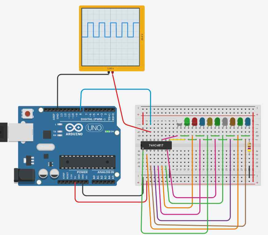 Autre montage avec un CD4017 ,un arduino et des LEDS