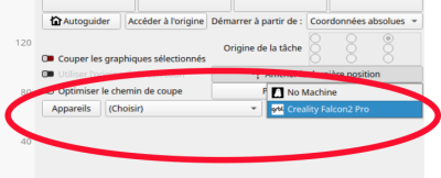-5- Et au moment de la connexion du PC avec la Laser , en plus du port USB ( COMx ) , choisisez la Creality Falcon2 Pro