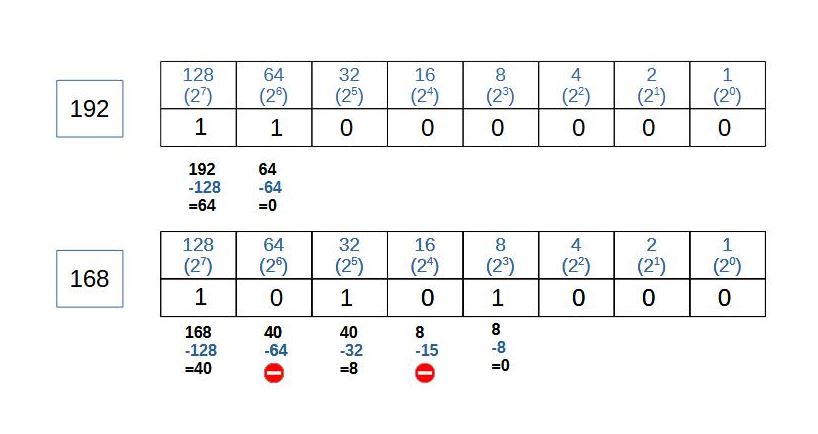 A partir de là, on peut convertir chaque décimale d’une adresse IP, masque de sous-réseau ou broadcast en binaire. Ainsi :