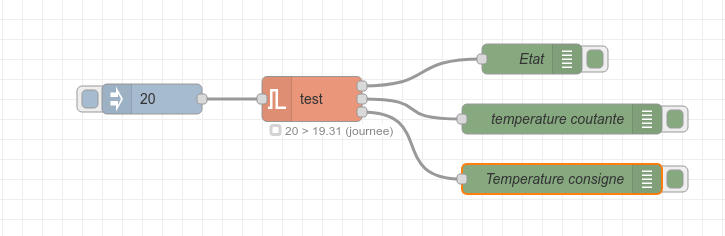 L'état (vrai/faux) sert à commander un actionneur. Les sorties de température actuelle et cible peuvent être connectées, par exemple, à un nœud ui_chart.