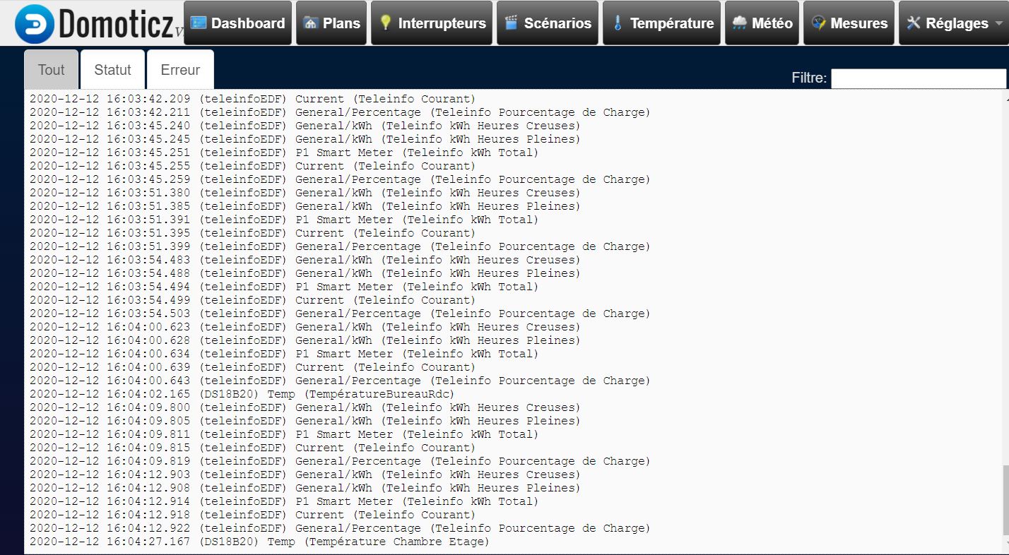 Je ne décris pas ici l'installation et l'utilisation de Domoticz mais seulement les particularités liées au sujet.