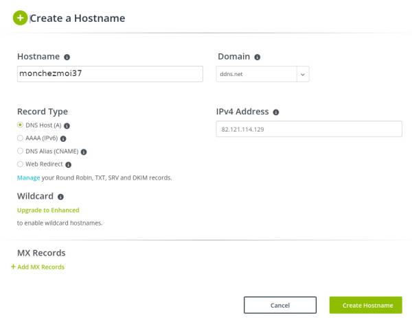 Il faut juste inserer la partie “monchezmoi37” dans le champ Hostname , le reste en implicite et valider bien sur