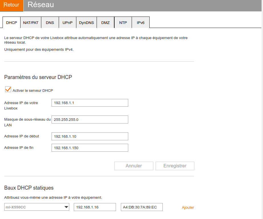 - soit en adresse dynamique (mode DHCP, Dynamic Host Configuration Protocol)