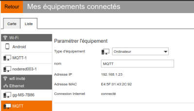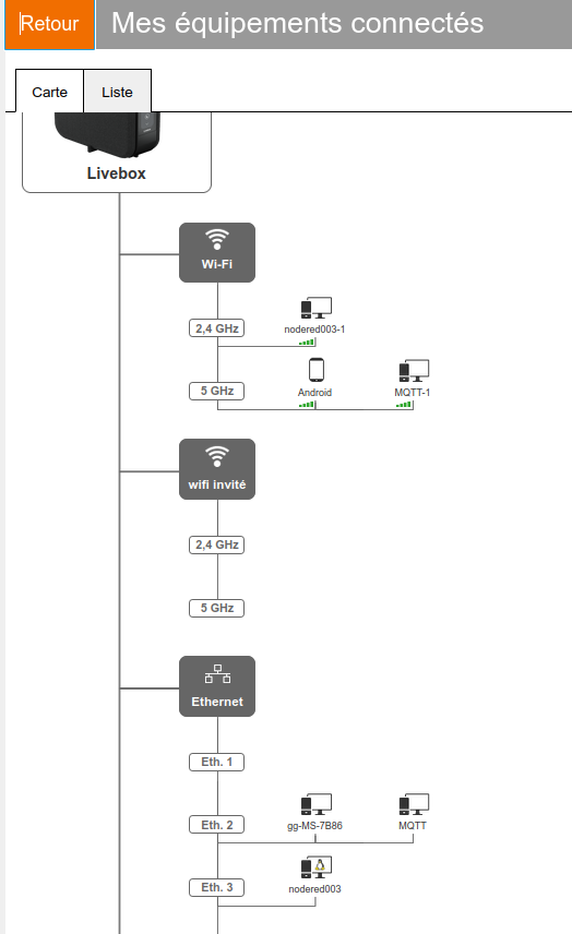 - On démarre le RPI et l on verifie son adresse IP dans sa BOX ( ici une Livebox) ou avec Nmap