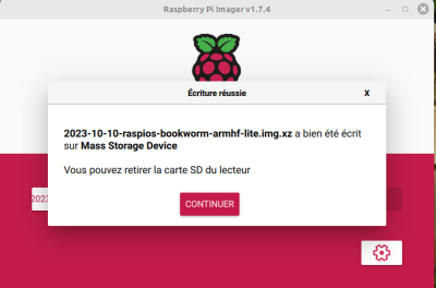 - Cliquer sur “ECRIRE” pour installer RPIOS sur la carte SD