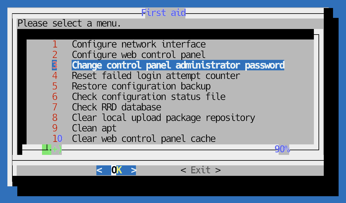 Vous vous connectez en SSH en tant qu'utilisateur par défaut (celui que vous avez créé lors du premier démarrage , pendant l'installation de Debian), devenez root et exécutez omv-firstaid (aucune option de ligne de commande) :