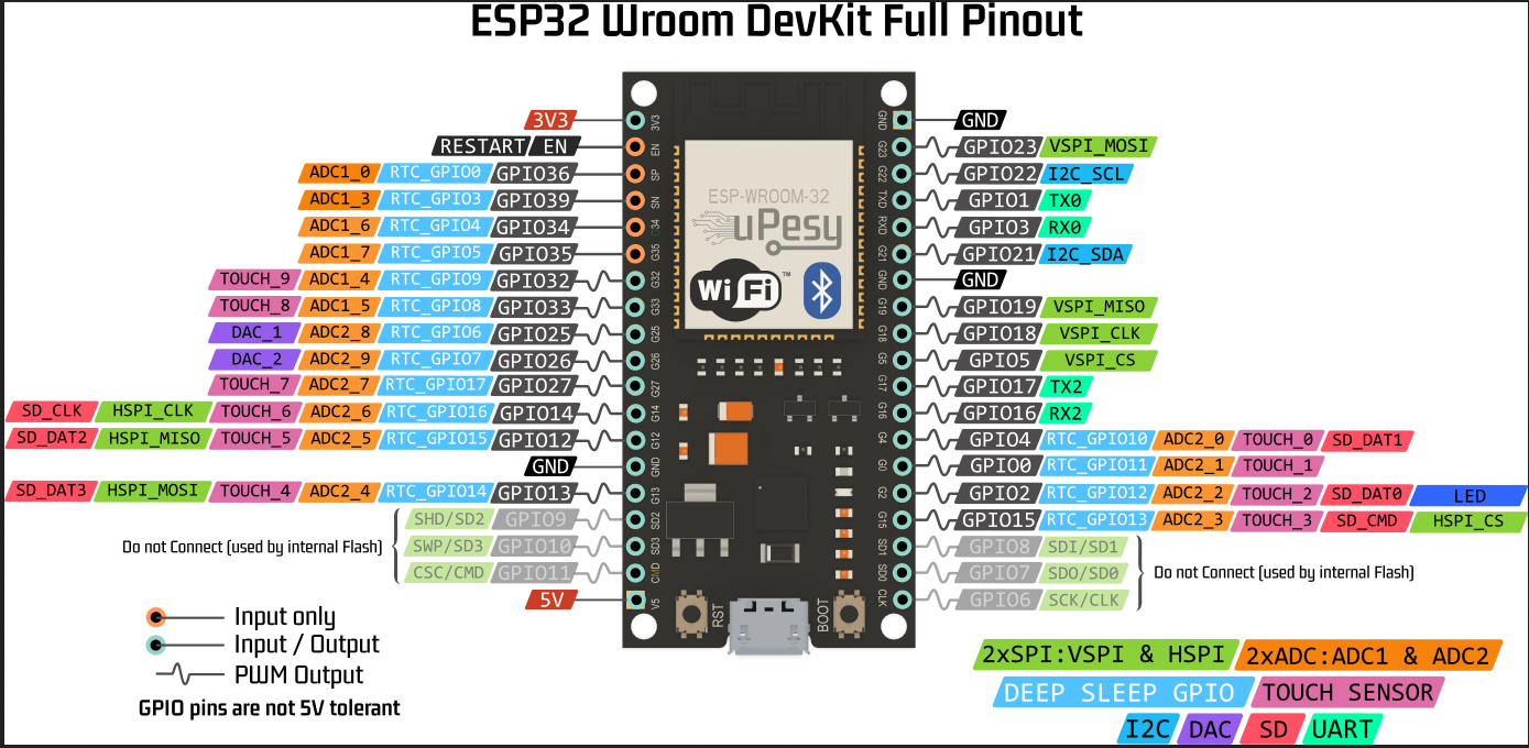 - Le Raspberry Pi utilise un niveau logique de 3.3V, donc assurez-vous que l'ESP32 soit alimenté en 3.3V également. Si vous branchez un câble GPIO directement à un autre périphérique qui fonctionne à 5V (par exemple, certaines cartes Arduino), vous risquez d'endommager les broches.