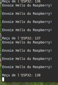 Ce code permet à l'ESP32 de lire les caractères envoyés par le Raspberry Pi et de répondre avec un message.